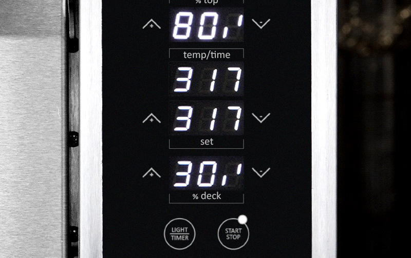 Control independiente de la potencia del techo y del suelo para calibrar de manera optima la cocción del os productos de panificación.